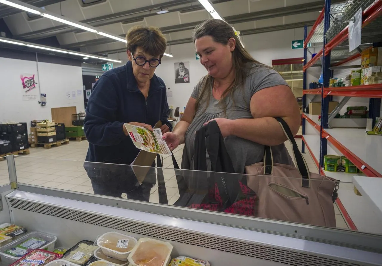 Coulaines, vendredi 14 novembre 2025. Sonia (à droite) a poussé la porte des Restos il y a un an environ. Avec cinq enfants à charge, elle n’avait plus guère le choix. © Le Maine Libre - Denis LAMBERT