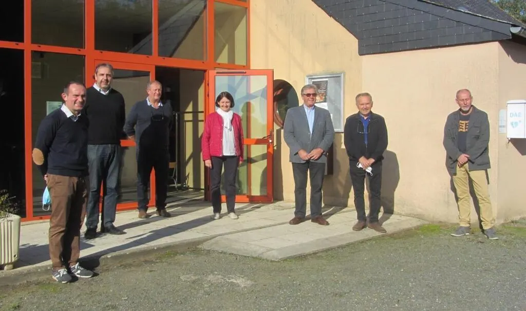 Gérard André est entouré des élus et vice-présidents qui l’ont accompagné dans sa présidence du syndicat d’eau. © Ouest-France