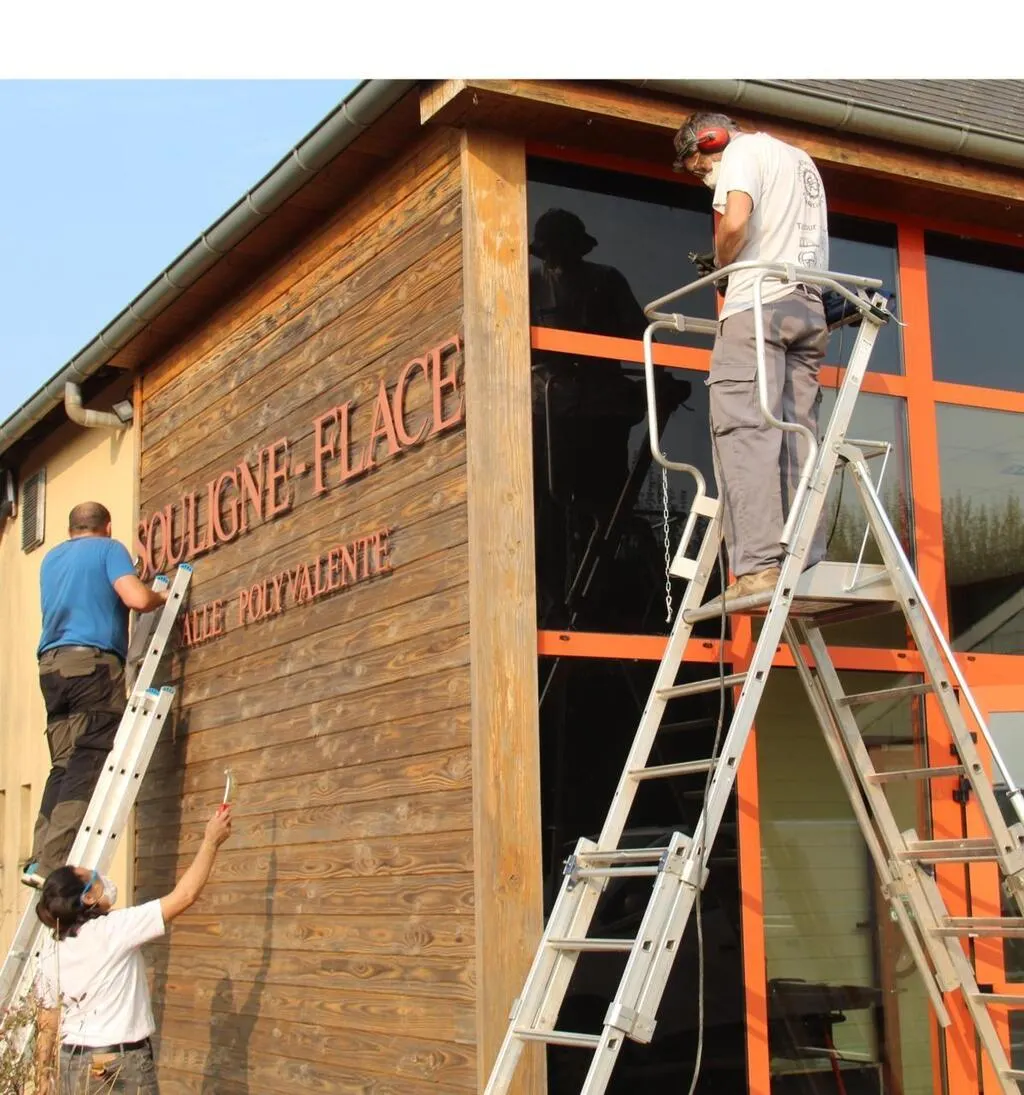 La réfection de la façade de la salle polyvalente a mobilisé plusieurs habitants. © Le Maine Libre