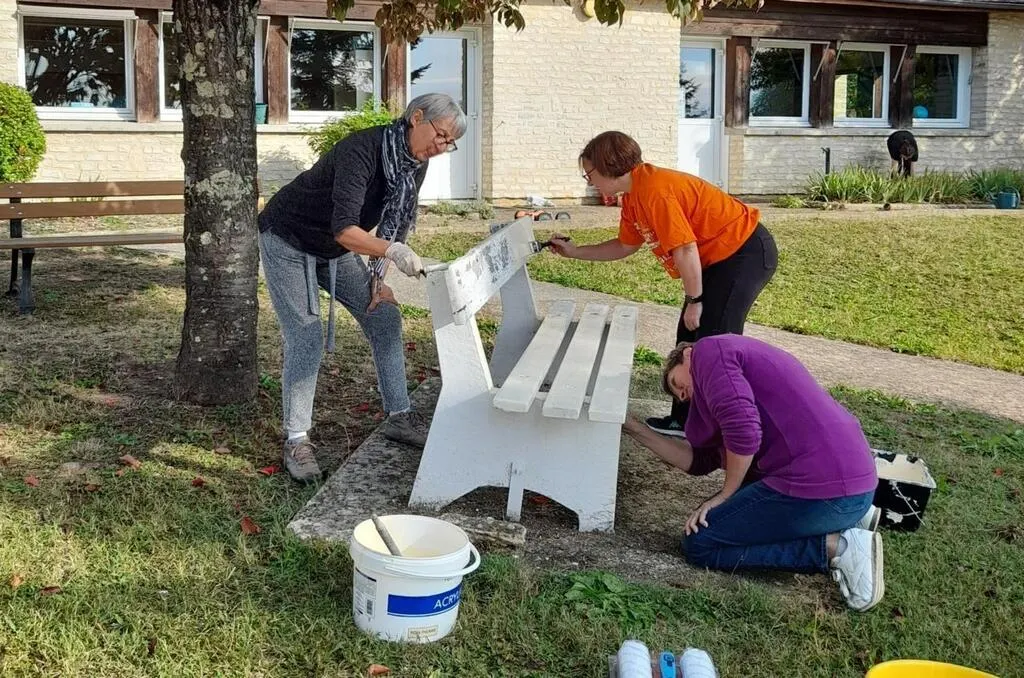 Mireille, Fabienne et Caroline ont repeint un banc dans la cour de l’école. « C’est un petit travail mais je suis contente d’y participer » raconte Mireille, fidèle à la journée citoyenne.