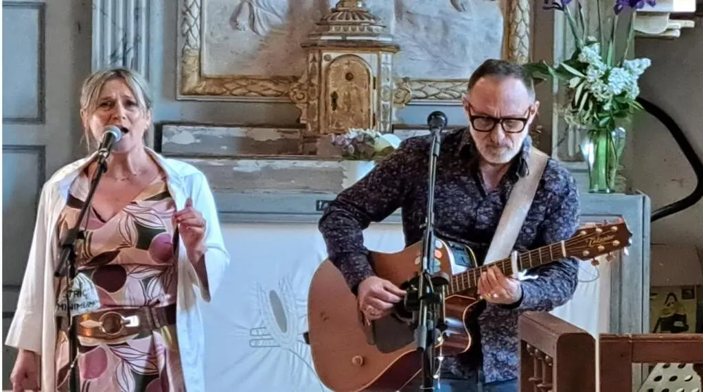 Le duo Strict Minimum a chanté pour les Amis de la Chapelle de Flacé, dimanche après-midi. C’est une des occasions de contempler cette chapelle que l’association remet en état depuis plusieurs années. Isabelle au chant et Jean-Louis à la guitare ont interprété des chansons pop et folk. Un retour aux sources pour Isabelle qui a passé son enfance à Souligné. © Ouest-France