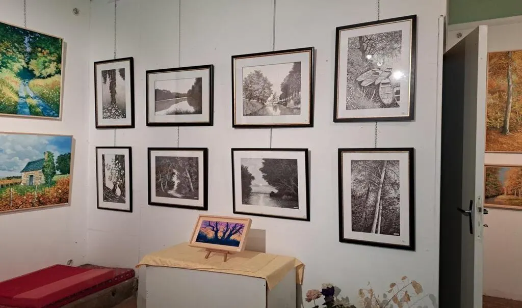 Pour cette 30e portes ouvertes, on y retrouve des paysages sarthois, ses forêts, ses champs avec coquelicots, ses bords de rivière, ses encres sur le Vieux-Mans.