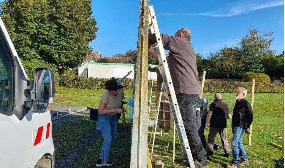 La matinée citoyenne a réuni, samedi, une trentaine de personnes autour de plusieurs ateliers : zone d’ombrage sur le terrain de loisirs, rénovation des panneaux de basket, terrain de volley et de foot, installation de crayons colorés pour marquer l’entrée de l’école, nettoyage autour de la chapelle de Flacé. Les plus courageux pouvaient poursuivre l’après-midi, après le repas offert par la municipalité. © Ouest-France