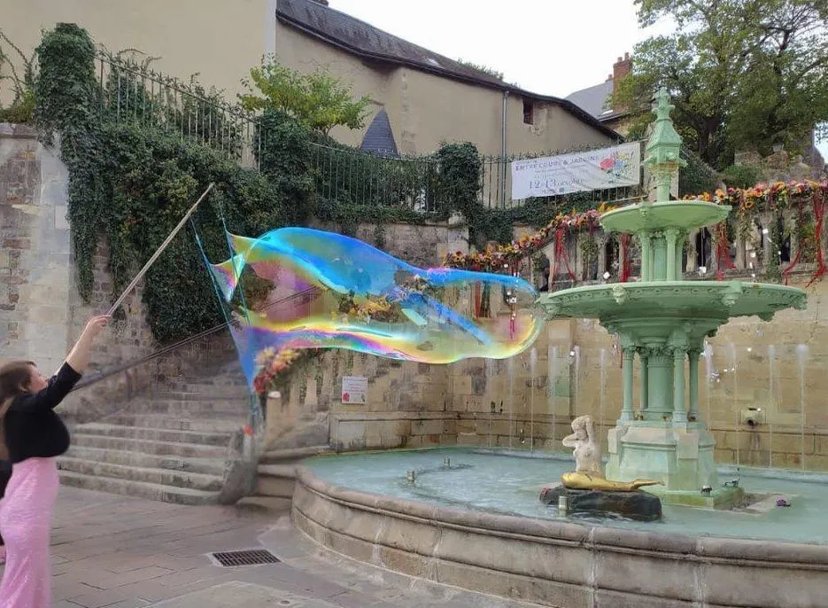 Comme à son habitude depuis maintenant des années, le Jardin de Poésies est ouvert au public le deuxième dimanche de chaque mois en été. Il est aussi possible de prendre rendez-vous avec la propriétaire des lieux. Pour la dernière ouverture de la saison, Bernadette Denay tenait à finir en beauté avec la participation de Marie Mevel qu’elle connaît de longue date. Cette magicienne envoûtera les enfants mais aussi les plus grands avec ses bulles géantes.