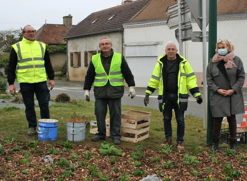 Élus et bénévoles ont planté les fleurs qui seront à leur apogée au printemps. © Le Maine Libre