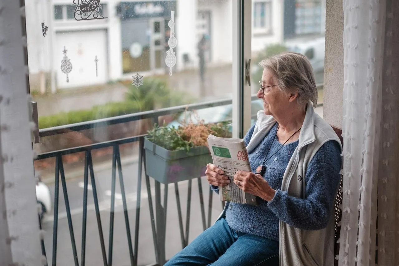 Quatre femmes (ici Paulette) et un homme vivent ensemble dans cette maison, une colocation pour seniors à Saint-Nazaire, gérée par l’entreprise sociale et solidaire CetteFamille. On y parle plus de souvenirs que de grands projets. © Simon Torlotin / Ouest-France