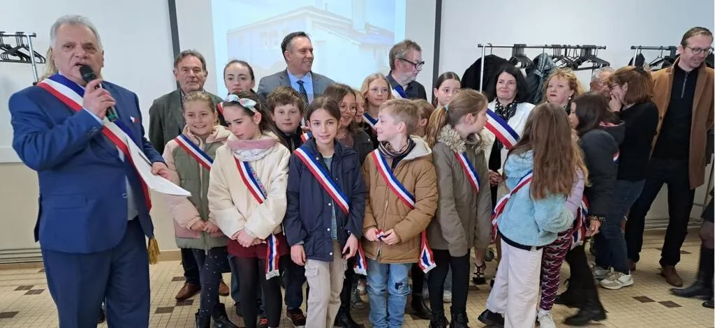 Jean-Yves Avignon, maire, retrace les étapes de cette restructuration, entouré de ses élus et du conseil municipal de jeunes. © Ouest-France