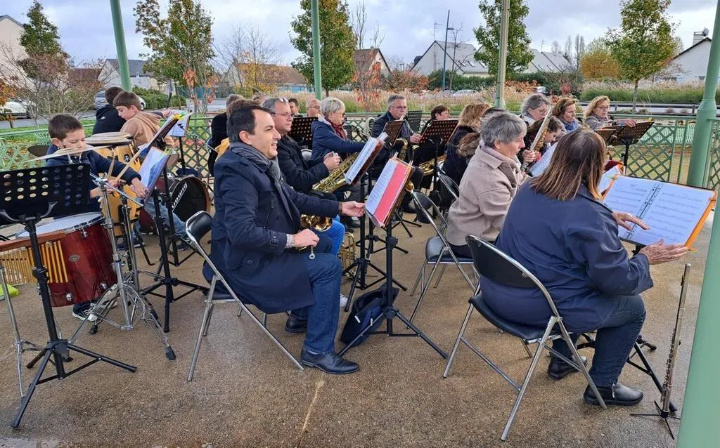 La météo était tout juste favorable mais au moins, il ne pleuvait pas, dimanche. Orhestra’Spay en a profité pour fêter sa patronne, Sainte-Cécile, en extérieur. Musiciennes et musiciens ont interprété leur programme sous le kiosque, devant un public qui a grossi au fur et à mesure de la prestation. © Ouest-France