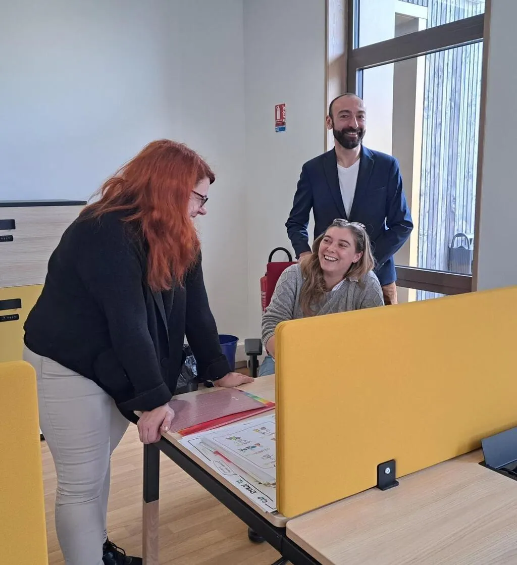 Simon André, chargé de mission, et deux utilisatrices de l’espace coworking Emergences. © Ouest-France