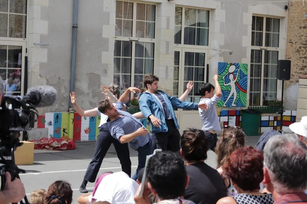 La compagnie Sept fois la langue propose un spectacle de théâtre d’objet acrobatique dans la cour de l’école Saint-Jacques. © Le Maine Libre