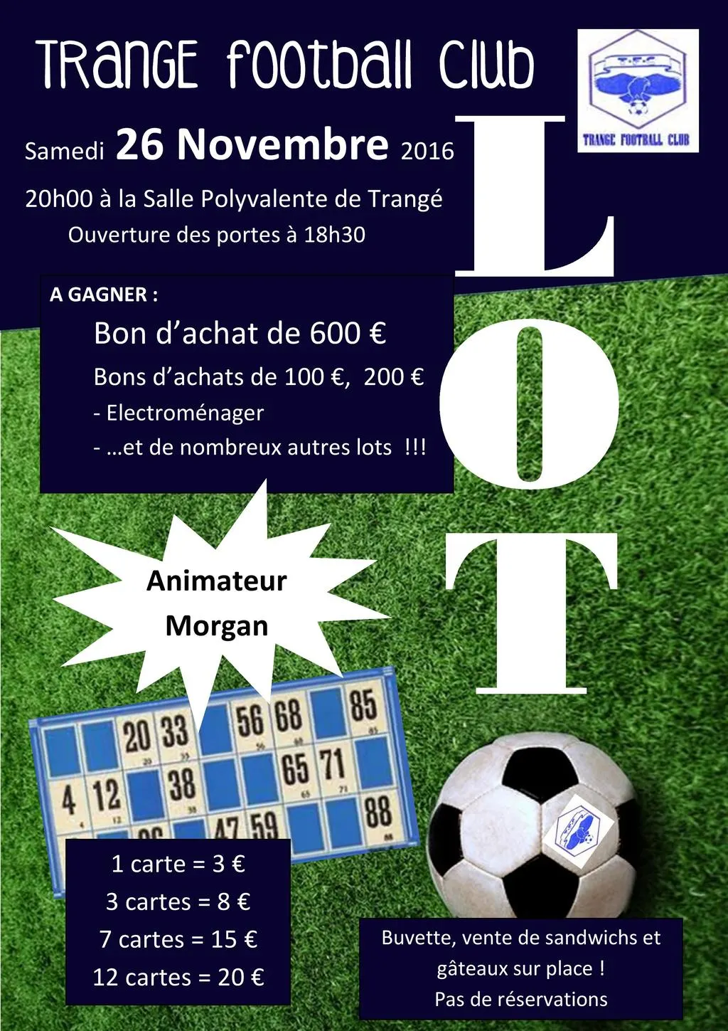 SUPER LOTO organisé à Trangé Samedi26 Novembre 2016 - ouverture portes 18H30