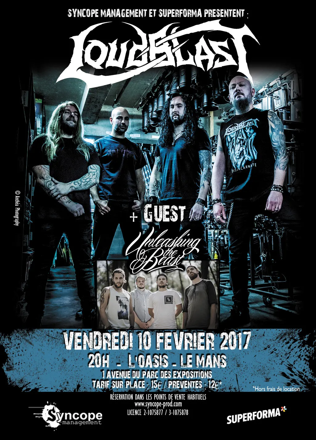 Syncope œuvre pour le développement des Musiques Actuelles depuis bientôt 18 ans. Cette collaboration avec SUPERFORMA est l’occasion de proposer un plateau Metal avec LOUDBLAST, véritable pionnier du Death Metal hexagonal. Pour ouvrir le bal, le groupe manceau UNLEASHING THE BEAST étoile montante du Metalcore français, offrira un son puissant et mélodique, se démarquant par ses textes en français.