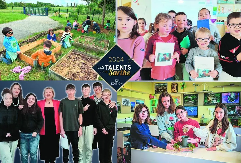 Les quatre écoles nommées aux Talents de la Sarthe. © Montage ML S. SUARD