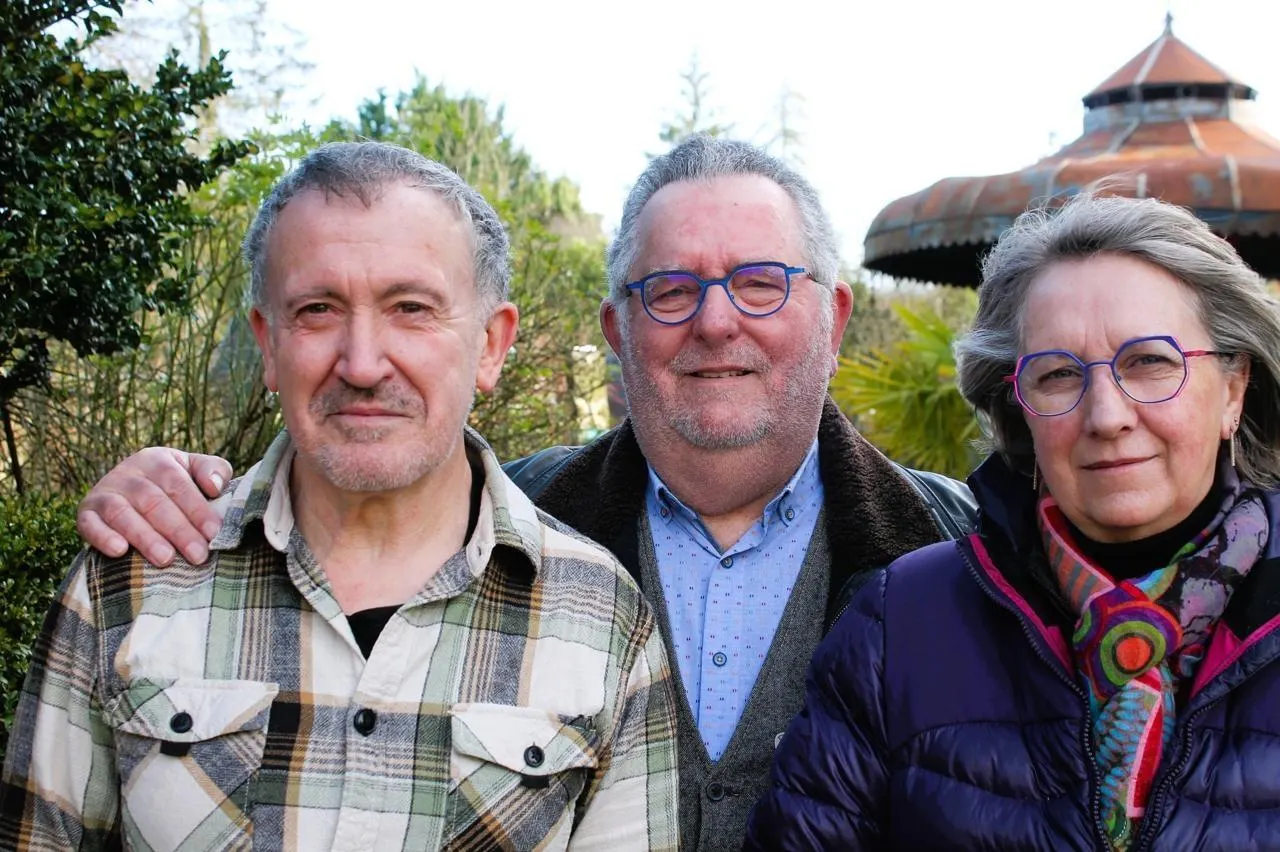 François Jouanneaux (au centre), entouré de Marc Llongarriu et de Nathalie Morel, bénévole du Passé (Ré) Créatif. © Le Maine Libre