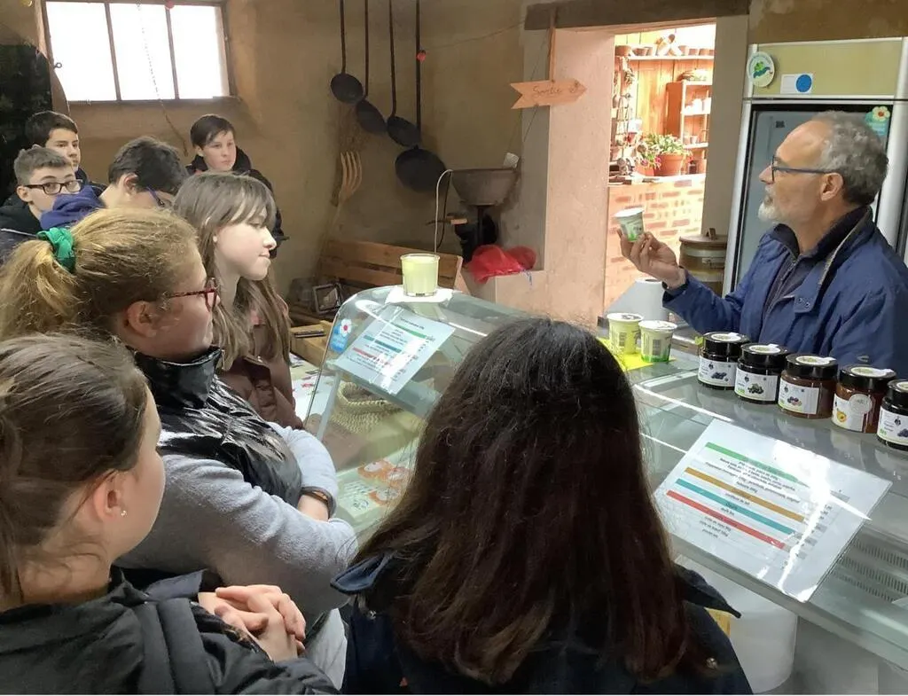 Benoît Briffaut, exploitant du Gaec, a retracé les étapes de production de ses produits en évoquant aussi le respect du bien-être animal, l’impact carbone du transport, la redynamisation du territoire… « L’agriculteur a su éveiller les consciences de nos futurs consommateurs sur l’importance de leur choix de produits en magasin » indique Catherine Bizet, enseignante et accompagnatrice. Les collégiens ont pu aussi découvrir les soins apportés aux poules pondeuses et aux vaches laitières. La visite du laboratoire de transformation du lait a permis d’illustrer la recherche permanente de réduction de l’impact sur l’environnement de par la baisse de consommation d’énergie, la gestion des déchets et le mode de vente directe. Les collégiens ont été impressionnés par l’avancement de la réflexion du Gaec sur le thème du développement durable et local répondant à la problématique du défi éco marmiton.