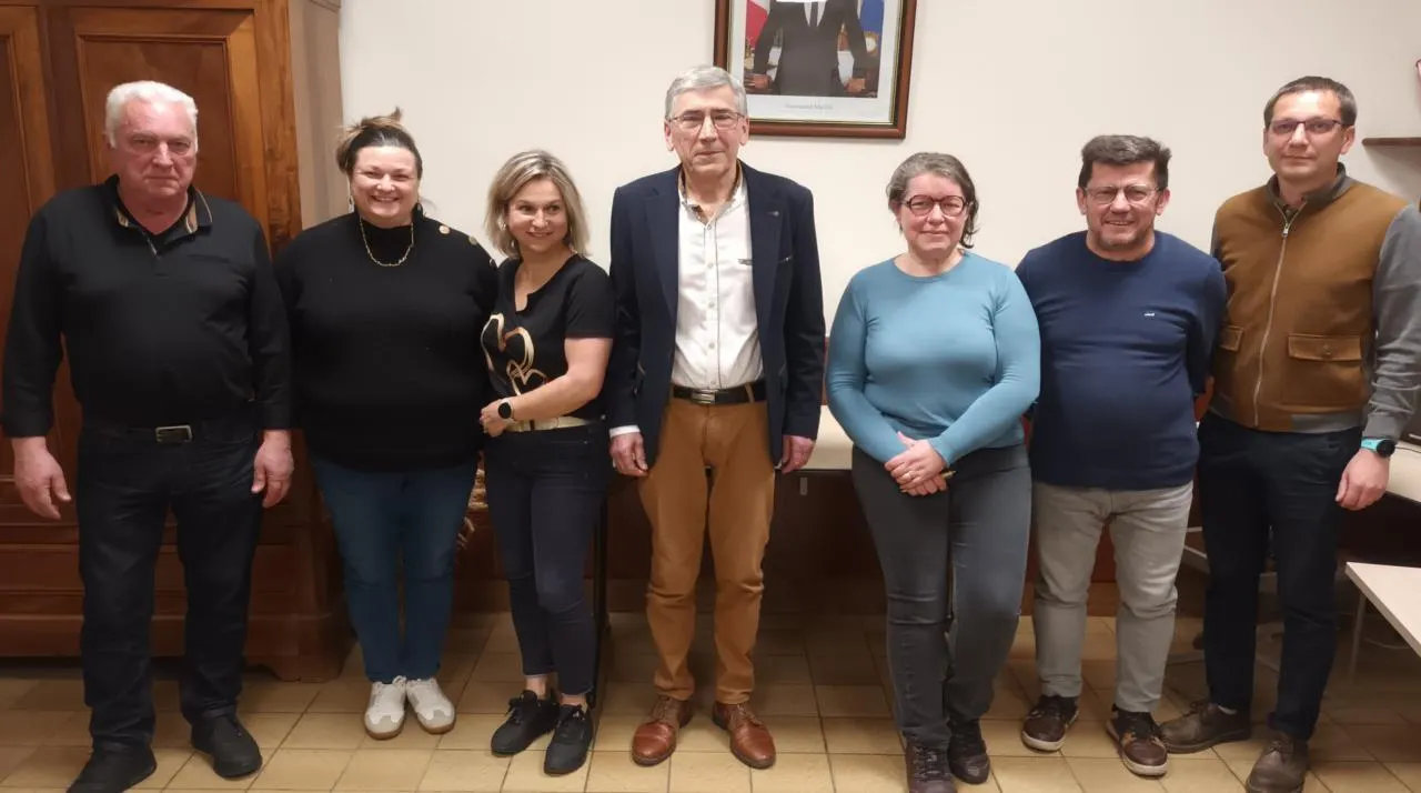 Le bureau municipal : Jean-Luc Martineau, Céline Estevao, Clarisse Bellardant, Gérard Lambert, Paméla Gaudree, Didier Martin et Jean-Charles Plessis. © Ouest-France.