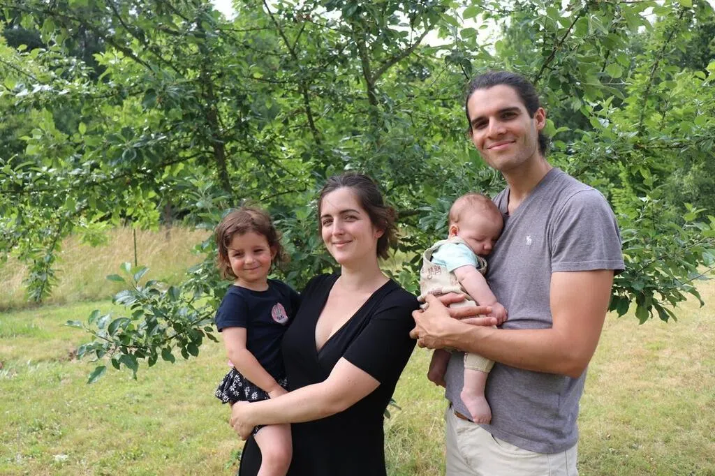 Alicia et Julien Lecourt Viou, déjà parents de Louisa, ont donné naissance à Charlie, le 13 avril 2023, chez eux, à La Fontaine-Saint-Martin (Sarthe). © Ouest-France