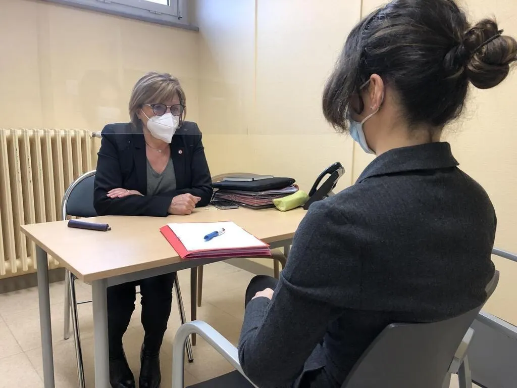 Sylvie Tolmont sillonne sa circonscription à la rencontre des habitants chaque vendredi, comme ici au guichet unique à Sablé-sur-Sarthe. © Ouest-France