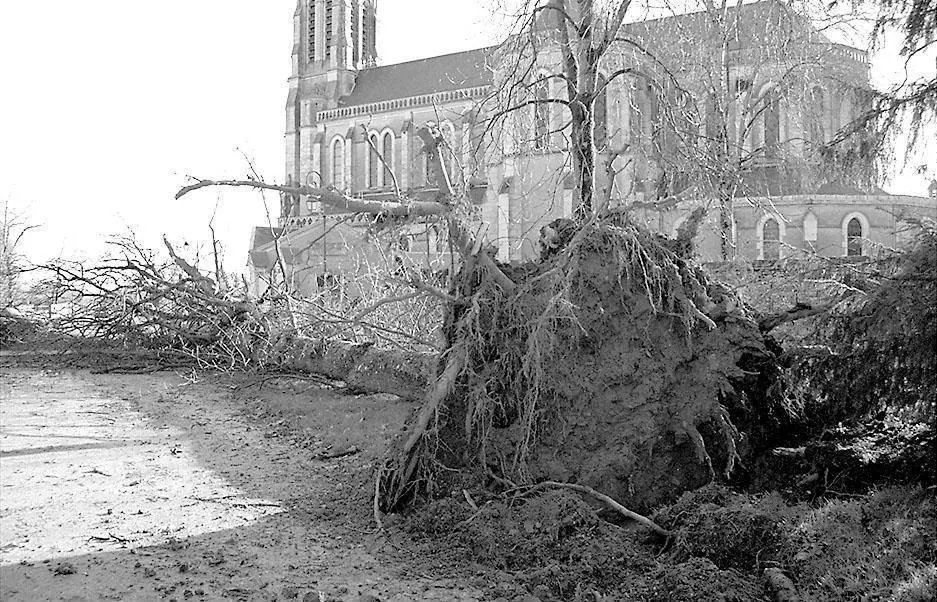 Les dégâts après le passage de la tempête Lothar à Sablé-sur-Sarthe, en décembre 1999. © Arichives Ouest-France