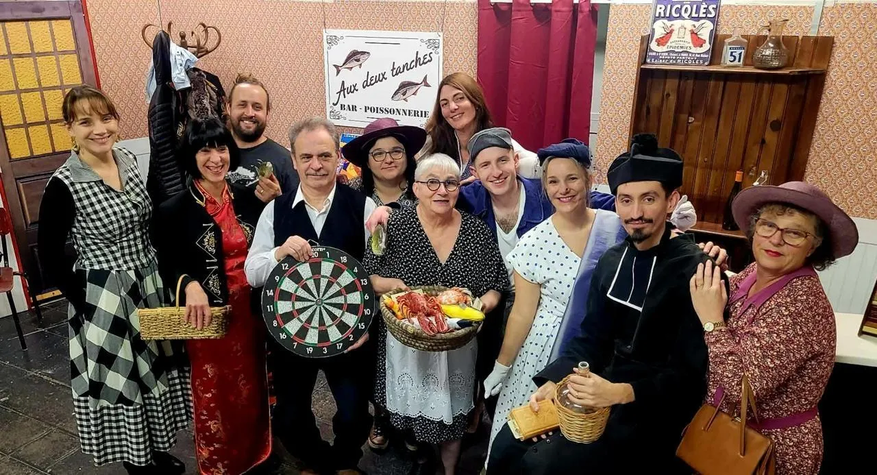 Le spectacle nous plonge en 1956, à Villevieille-sur-Lavette, où Pierrot et Martine tiennent un établissement pour le moins original : le seul bar-poissonnerie de France. Habitué à prendre les grandes décisions de sa vie en jouant aux fléchettes, Pierrot décide, avec Martine, de quitter la ville pour s’installer ailleurs. Avant de partir, le couple réunit ses clients les plus fidèles afin d’effacer les ardoises. Mais un événement inattendu vient bouleverser leurs plans : le commerce est vendu avant même d’avoir été affiché chez le notaire, et l’acheteur souhaite rester anonyme. Qui est-il et pourquoi cet achat mystérieux ?