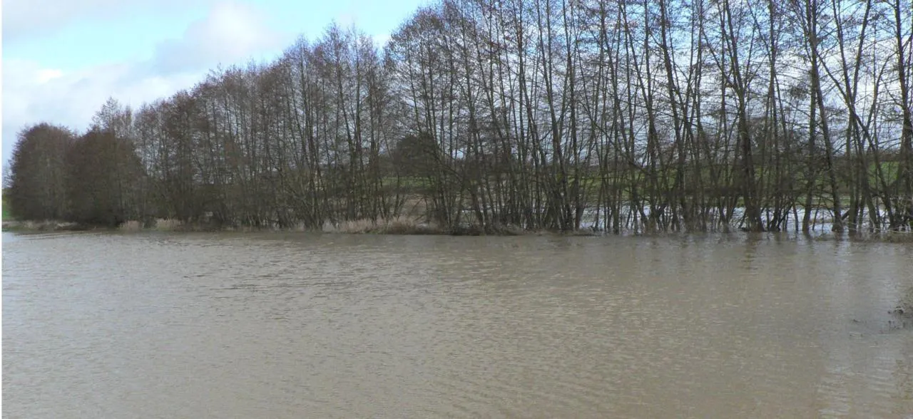 Après les fortes précipitations des derniers jours, la rivière a quitté son lit pour transformer un champ en grand lac. © Ouest-France