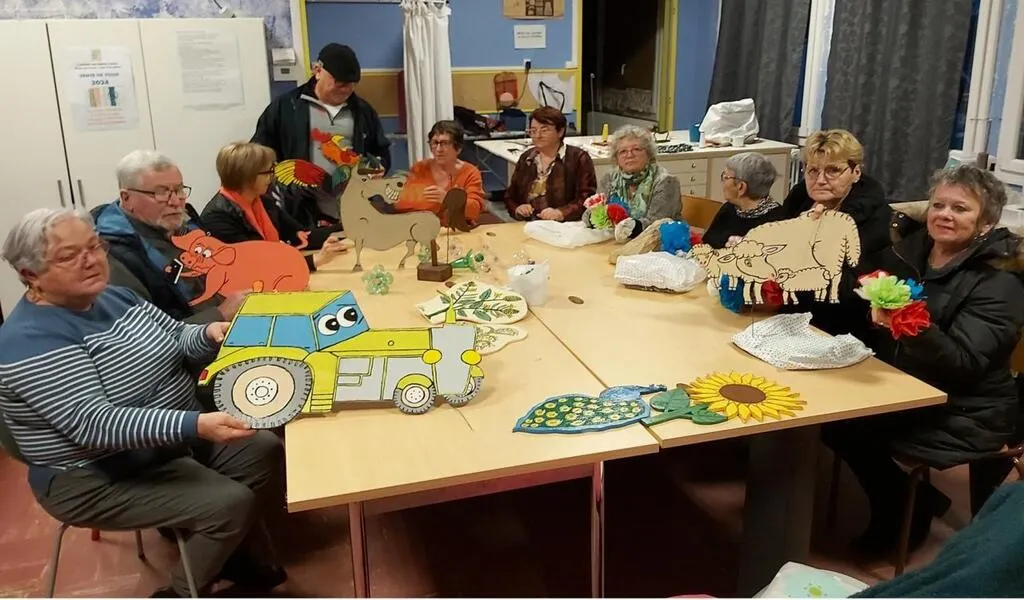 Une commission décoration a été créée. Les séances se déroulent dans l’atelier couture de Valérie Le Gall, place des Tilleuls. Depuis Noël, une douzaine de dames fabriquent des fleurs décoratives en crépon avec un support de bouteille en plastique en gardant la partie haute avec le bouchon.