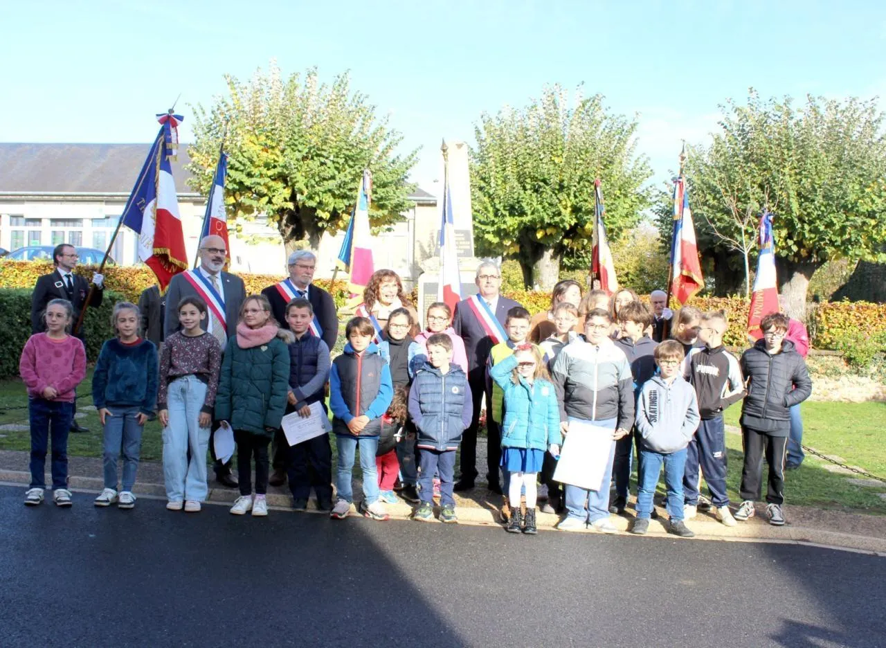 Après plusieurs années où chaque commune célébrait séparément l’Armistice, les élus ont instauré une cérémonie tournante permettant d’unir les quatre villages autour d’un hommage commun (Thoiré-sur-Dinan, Beaumont-Pied-de-Bœuf, Flée et Jupilles). Cette formule, appréciée de tous, favorise la mutualisation des moyens (musique, discours, dépôt de gerbe, vin d’honneur) et renforce la cohésion locale autour du devoir de mémoire. Après la lecture du message officiel de Catherine Vautrin, ministre des Armées et des Anciens combattants, et d’Alice Rufo, ministre déléguée auprès de la ministre des Armées et des Anciens combattants, le maire de Thoiré-sur-Dinan Bruno Boulay a donné la parole à cinq élèves du Sivos de Bercé : Nadia, Chloé, Karine, Alissia et Martin. Ils ont lu le message de l’Ufac (Union française des associations de combattants et de victimes de guerre). La cérémonie s’est clôturée par la Marseillaise, entonnée à l’unisson.