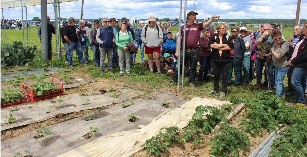 Une partie des randonneurs chez Thomas Levillain, éleveur de bovins et maraîcher. © Le Maine Libre