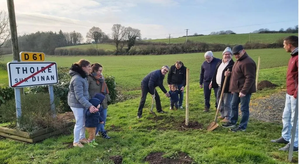 Dimanche matin, le maire de Thoiré-sur-Dinan Bruno Boulay et ses adjoints ont planté quatre arbres, trois amandiers et un pommier, fournis gratuitement par le conseil régional pour l’opération « Une naissance, un arbre ».
