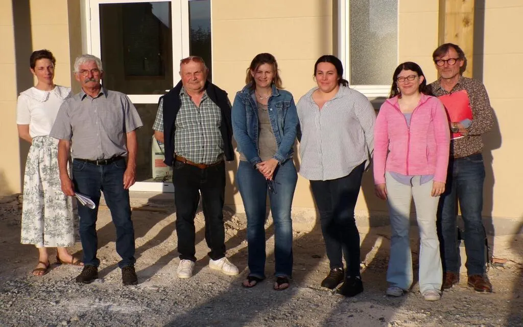 Les élus et les assistantes devant l’entrée de la MAM. © Le Maine Libre