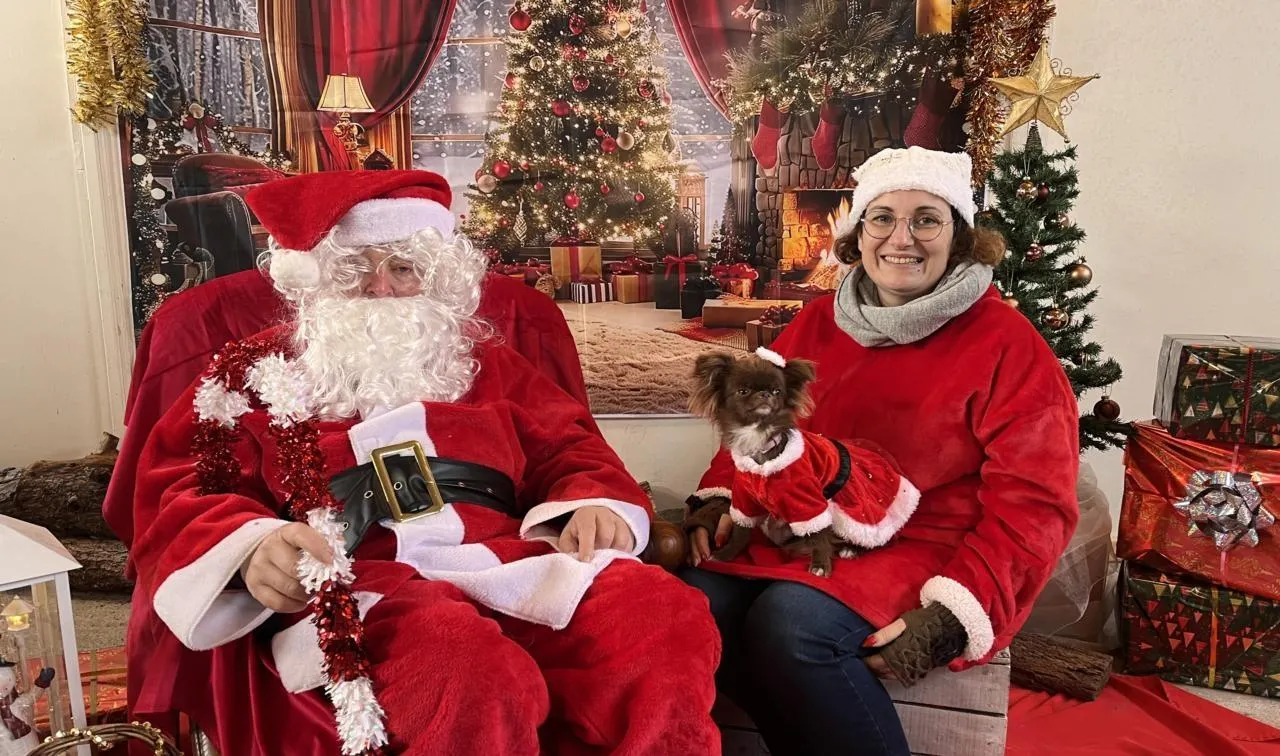 Thorée-les-Pins. Les chiens aussi ont le droit à leur photo avec le Père Noël... |