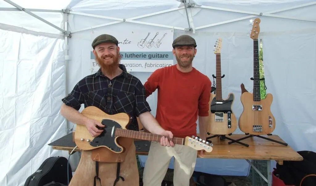 Le luthier Thomas Sezalory (à droite) et un ami guitariste © Ouest-France