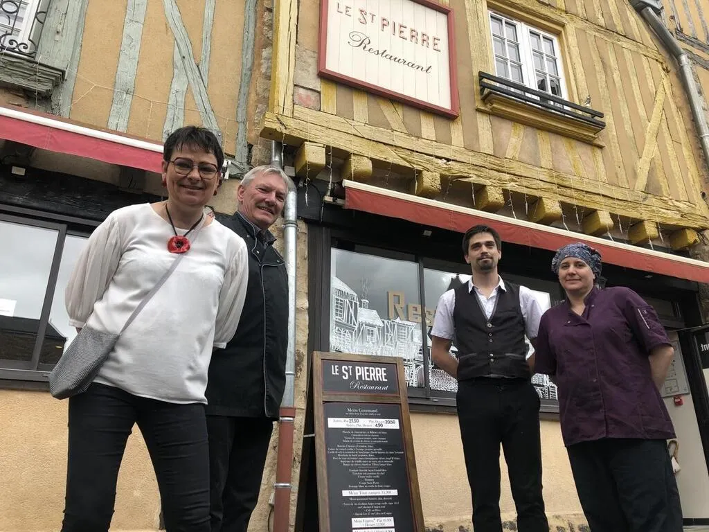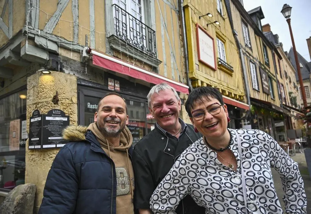 Sébastien Blondeau (à gauche) va recréer l’Auberge des 7 plats dans le restaurant le Saint-Pierre, géré par Patrick et Séverine Breteau. © Le Maine Libre – Denis LAMBERT
