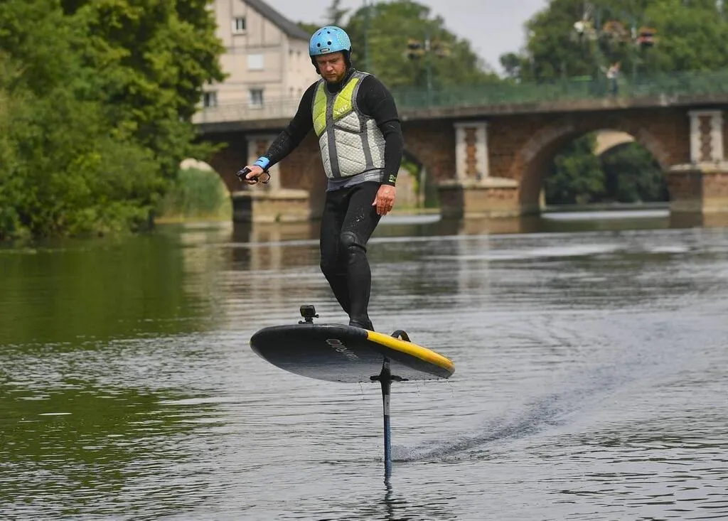 La Suze-sur-Sarthe, mercredi 3 juin. L’activité de surf électrique, qui vient de voir le jour dans le département, une locomotive dans les activités à sensation. © Le Maine Libre – YVON LOUE