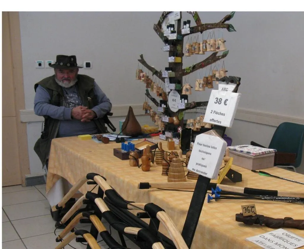 Le marché de Noël permet aussi aux handicapés de faire connaître leur talent et capacité. Jean-Paul Cateau, handicapé en chaise roulante, président de l’association initiation tournage. Il travaille le bois avec beaucoup de talent pour réaliser des arcs avec des flèches, grâce à sa proximité avec une scierie à Saint-Paul-Le Gaultier. Il réalise aussi des diffuseurs de parfums avec des huiles essentielles. Le Père Noël est, lui, arrivé en quad avec ses cadeaux et des bonbons pour la joie des petits et grands du village.