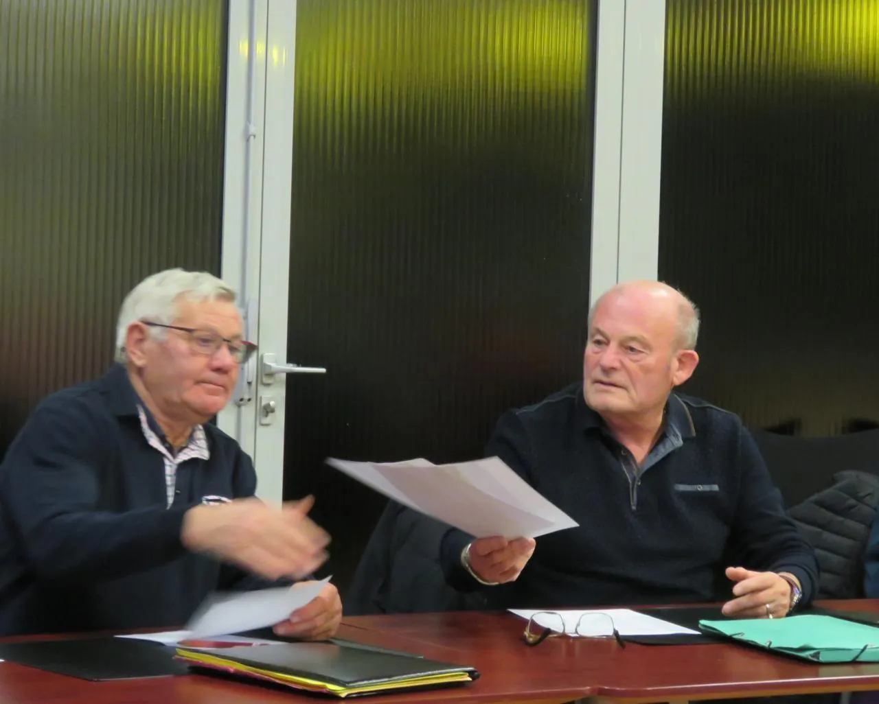 Gérard Dutertre et Alain Lefranc, conseillers municipaux, lors du conseil municipal du mardi 2 décembre à Trangé. © Le Maine Libre
