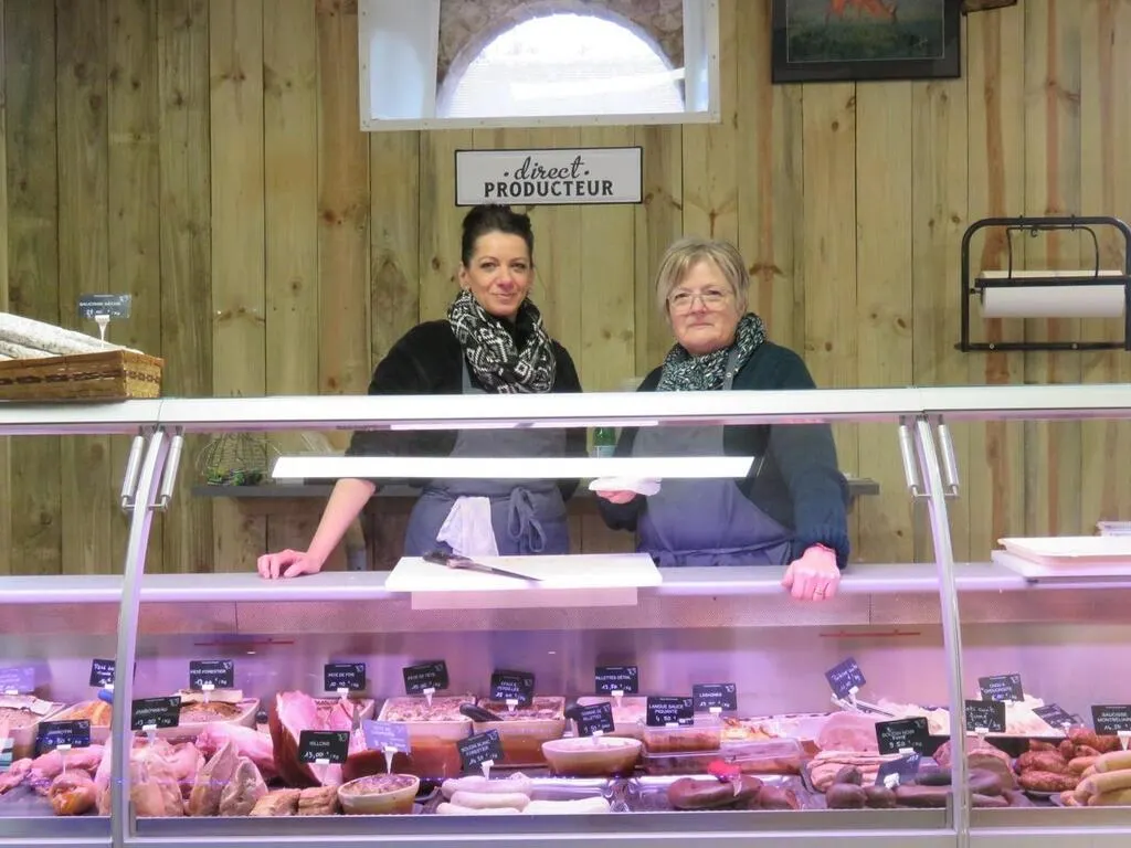 Marie-Ange et Isabelle, vendeuses à la charcuterie à la ferme à La Drouerie à Trangé, accueillent maintenant dans la nouvelle boutique les clients le vendredi après-midi et le samedi matin. © Le Maine Libre