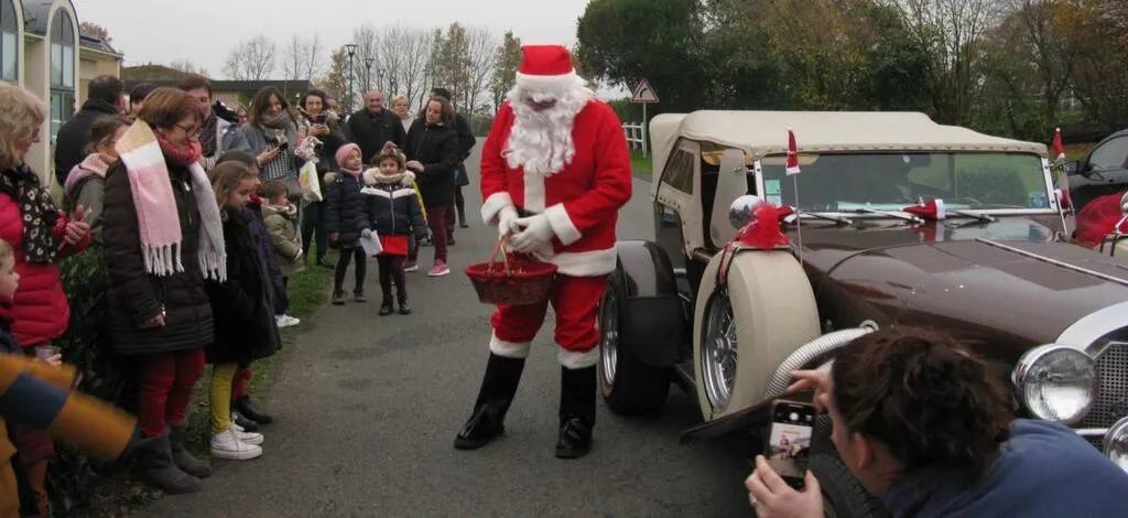 Dimanche, devant la Maison pour tous, le traîneau a bien changé de forme avec l’arrivée du Père Noël en Excalibur 76, pilotée par Guillaume Peard. Il portait un panier plein de bonbons à distribuer aux enfants qui l’attendaient avec impatience.