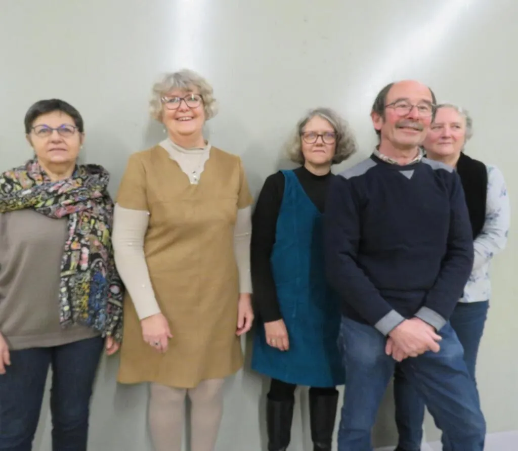 De gauche à droite : Josette Lecourt, secrétaire, Catherine Coutable, présidente, Françoise Prunier, trésorière adjointe, Christian Durfort, trésorier et Annick Tridon, secrétaire adjointe, constituent le bureau. © Le Maine Libre