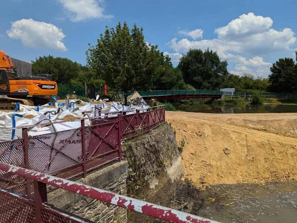 En ce mois de juin 2024, des travaux viennent d’être lancés pour un an et demi au niveau du barrage de la Maison de l’eau. La passerelle qui relie le site à l’Arche de la Nature est fermée jusqu’à mi-novembre.