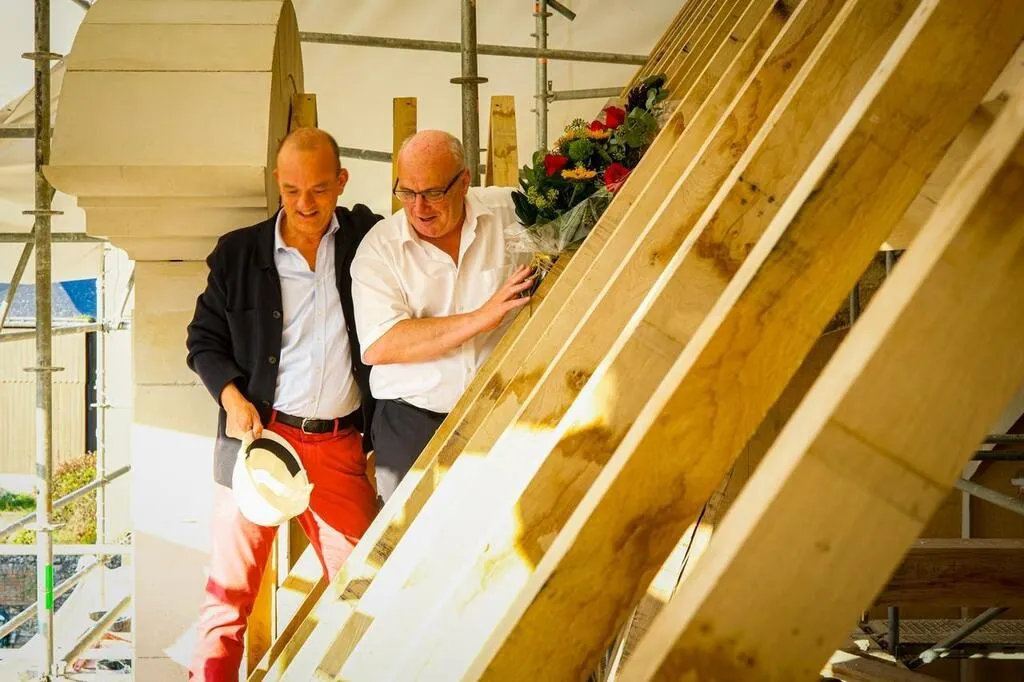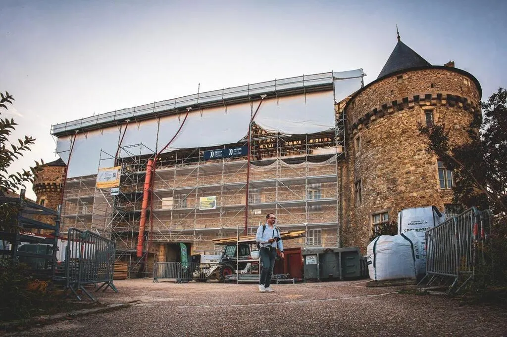 L’une des étapes importantes des travaux du château de Sillé-le-Guillaume (Sarthe) a été finalisée : le montage de la pièce maîtresse et le squelette de la toiture. Pour l’occasion, des élèves et collégiens y ont glissé des traces, vendredi 20 septembre 2024.