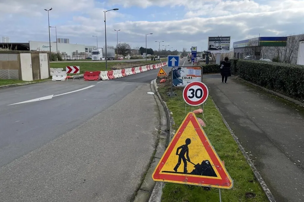 La rue Saint-Laurent va rester en travaux jusqu’en mars 2025 à la sortie de Sablé-sur-Sarthe, en direction de La Flèche. © Ouest-France