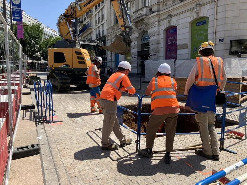 Les travaux du réseau de chaleur « nord » ont débuté il y a quelques semaines, au Mans (Sarthe). Ici des ouvriers, place de la République. © Ouest-France