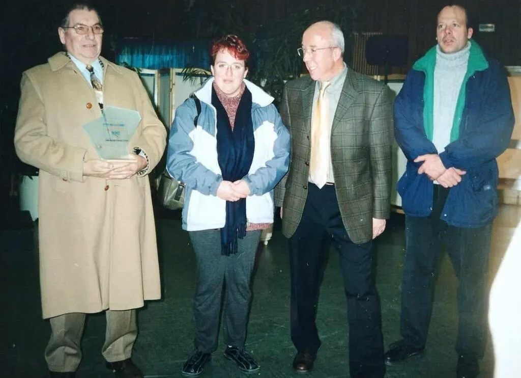Pierre Bailly, Delphine Mallard, Joël Herbin et M. Mayoux, le 11 janvier 2003 lors de la remise du challenge de la ville la plus sportive. © Archives