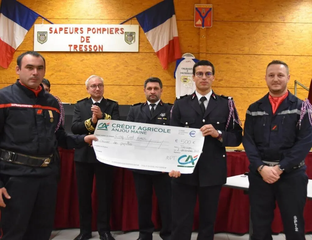 À Tresson, la Sainte-Barbe était l’occasion de saluer les sapeurs-pompiers méritants en leur décernant fourragères, grades et diplômes.