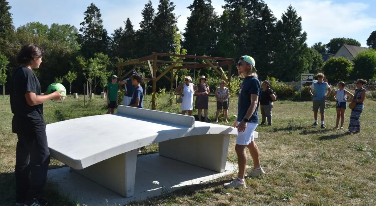 Récemment installée sur l’aire de loisirs intergénérationnelle de Tresson, la structure de teqball mêlant football et tennis de table, attire déjà de nombreux adeptes.