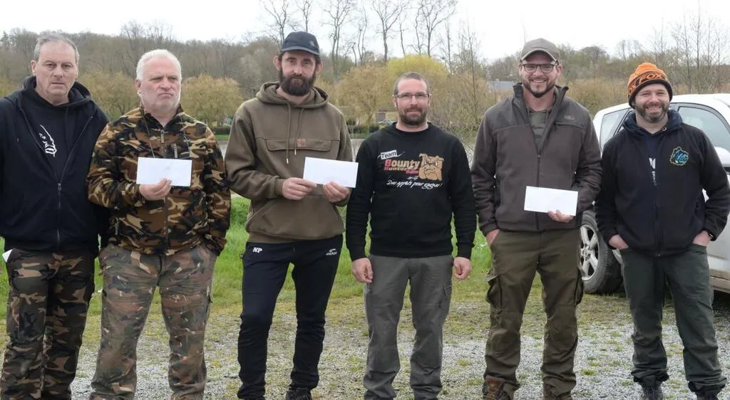 Le podium : ces six pêcheurs totalisent plus de 167 kg de carpes, toutes remises à l’eau. © Le Maine Libre