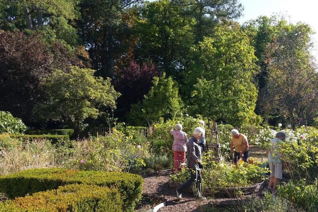 Les bénévoles de l’association entretiennent les jardins de l’abbaye de Tuffé tous les jeudis. © DR / Association des amis de l’abbaye de Tuffé