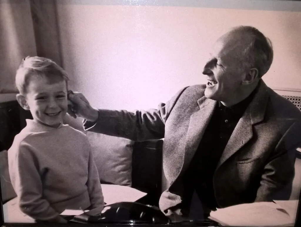 Père attentif pour compenser les absences exigées par sa carrière, Bourvil, ici avec Philippe en 1960, faisait profiter les siens de son caractère joyeux. © Collection privée
