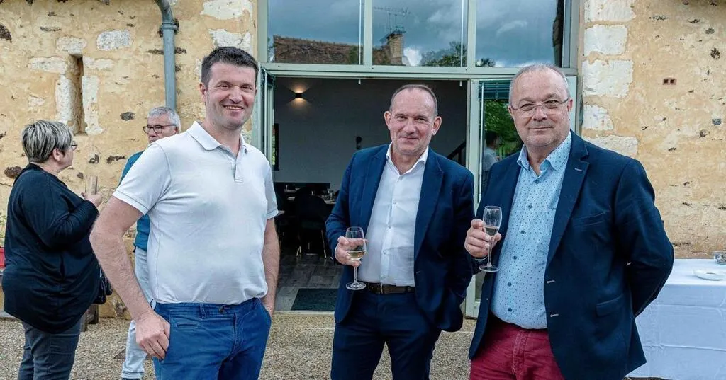Anthony Boucher, le nouveau chef, aux côtés d’Emmanuel Franco, président de la communauté de communes Val de Sarthe, et d’Hervé Fontaineau, maire de Mézeray, à l’inauguration du restaurant, jeudi 23 mai 2024. © Capture d’écran Facebook / Les Mésangères